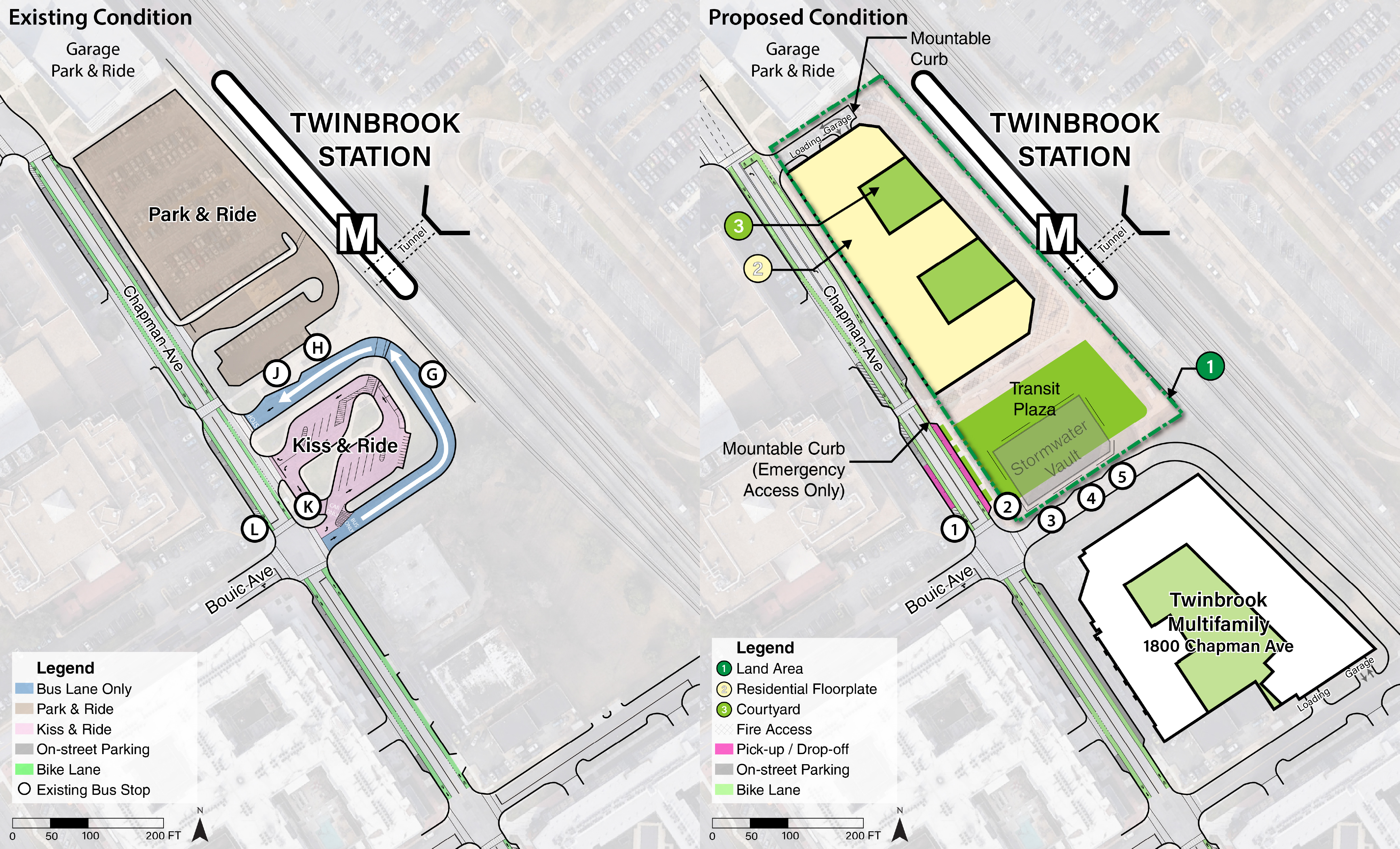 Metro is proposing to relocate the bus loop, three (3) bus bays, Kiss & Ride facilities, and remove the surface Park & Ride lot at the transit facilities on the west side of the Twinbrook Station. This reconfiguration will create space for residential/commercial development, better connect the Station into the fabric of the surrounding community, offer an improved customer experience at the station entrance, and create open space amenities.